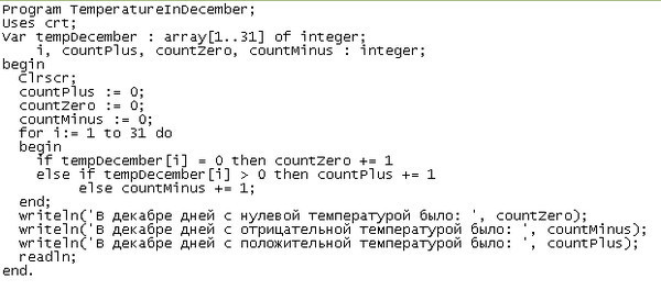 writeln('В декабре дней с отрицательной температурой было: ', countMinus);
