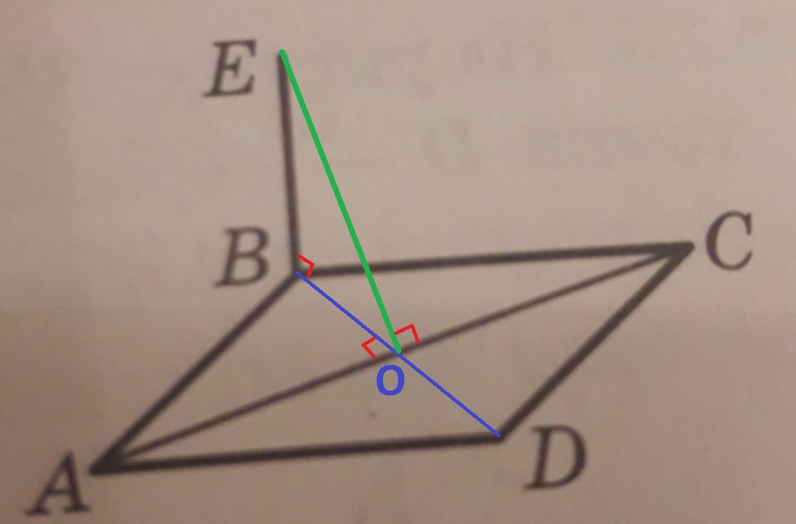 EB ⊥ (ABC), BO ⊥ AC ⇒ ЕО ⊥ AC.