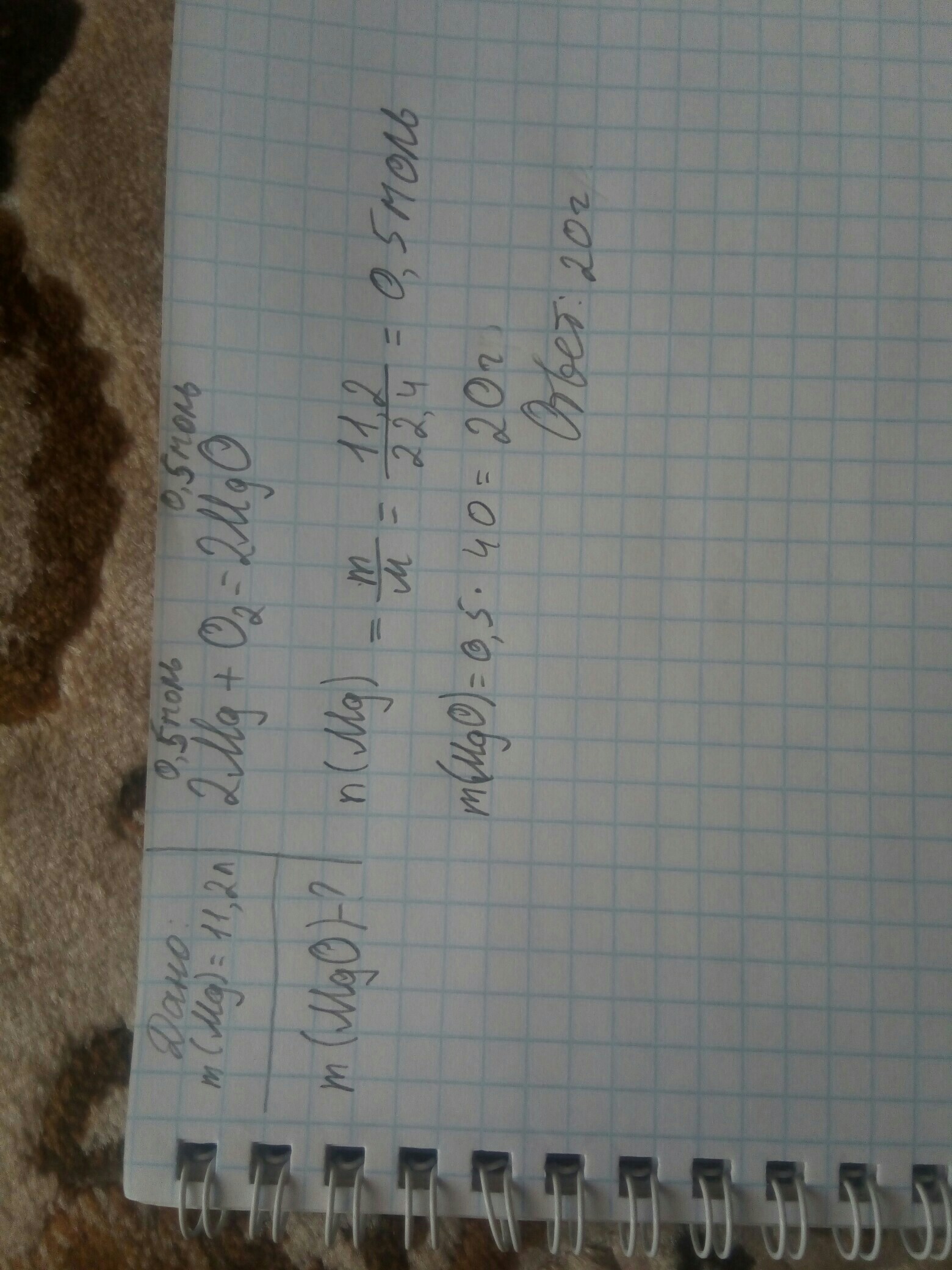 Рассчитайте массу оксида магния который образуется при сжигании магния в 11,2 л кислорода(н.у). Пожалуйста как можно скорее)