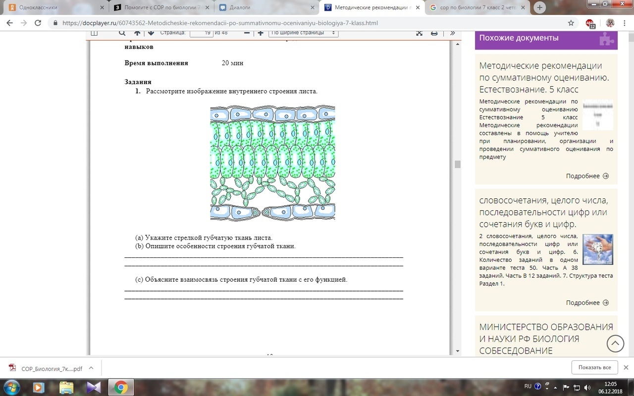 Б)ГУБЧАТАЯ ТКАНЬ (губчатая паренхима) , нижняя рыхлая часть мякоти листа. Характеризуется неправильной формой клеток и крупными межклетниками. К нижней поверхности её примыкает эпидермис с многочисленными устьицами. Основная функция этой ткани – транспирация. Водяной пар, концентрирующийся в межклетниках, выходит наружу через устьица, которые в значительной степени регулируют транспирацию.