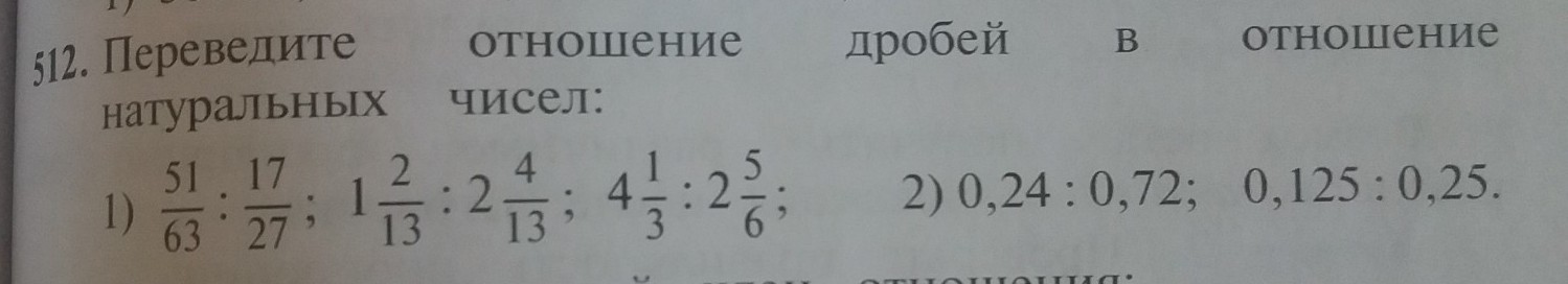 1)51/63 : 17/27 = 51×27/63×17=9/7=9:7;