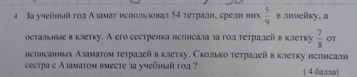 1) 54÷9×5=30 (тет)- в линейку испесал Азамат