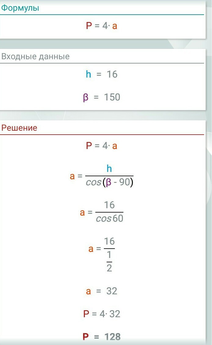 Найдите периметр ромба, тупой угол которого равен 150 градусов, а высота, проведенная из его вершины равна 16 см