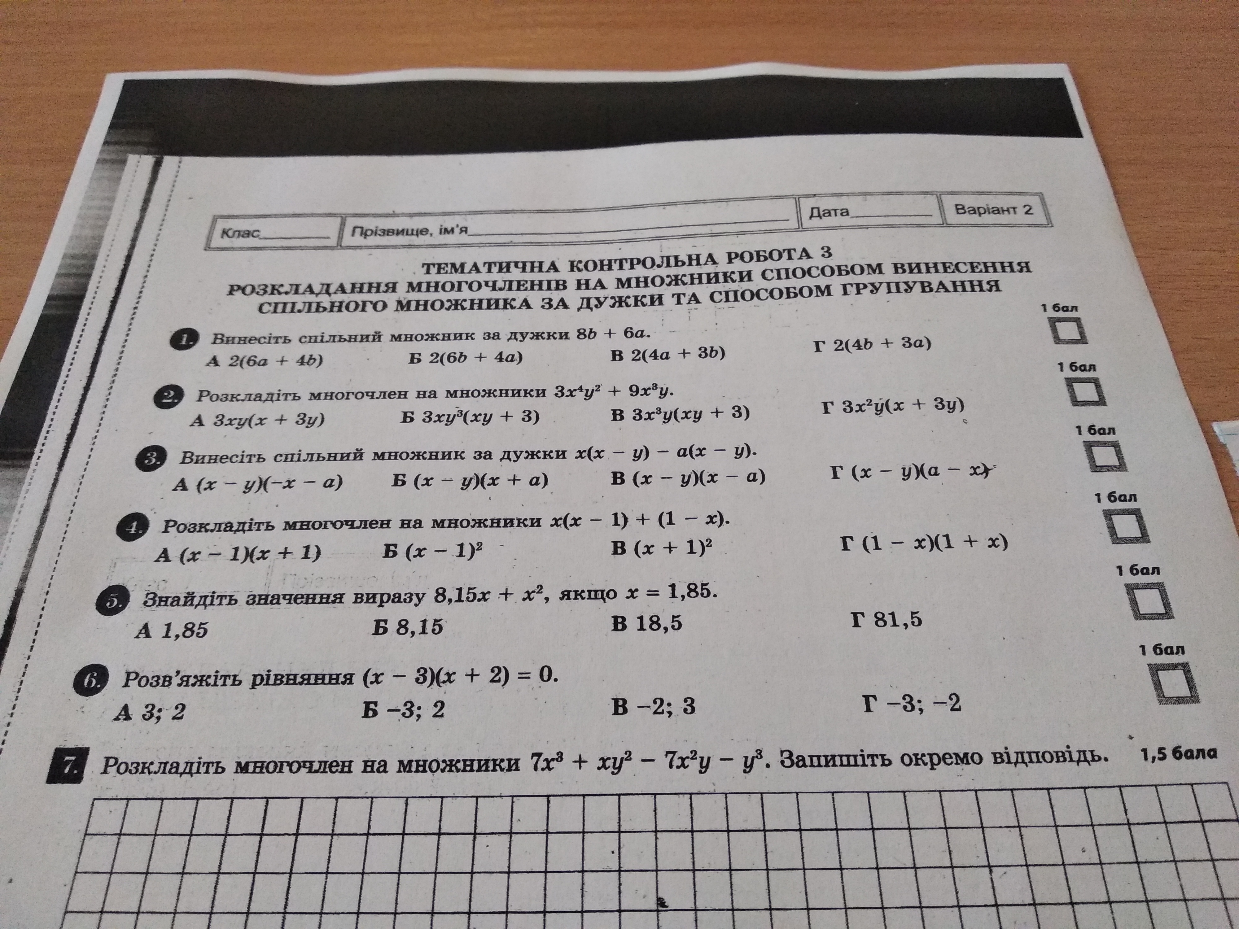 7х³ + ху² - 7х²у - у³ = (7х³ - 7х²у) + (ху² - у³) =