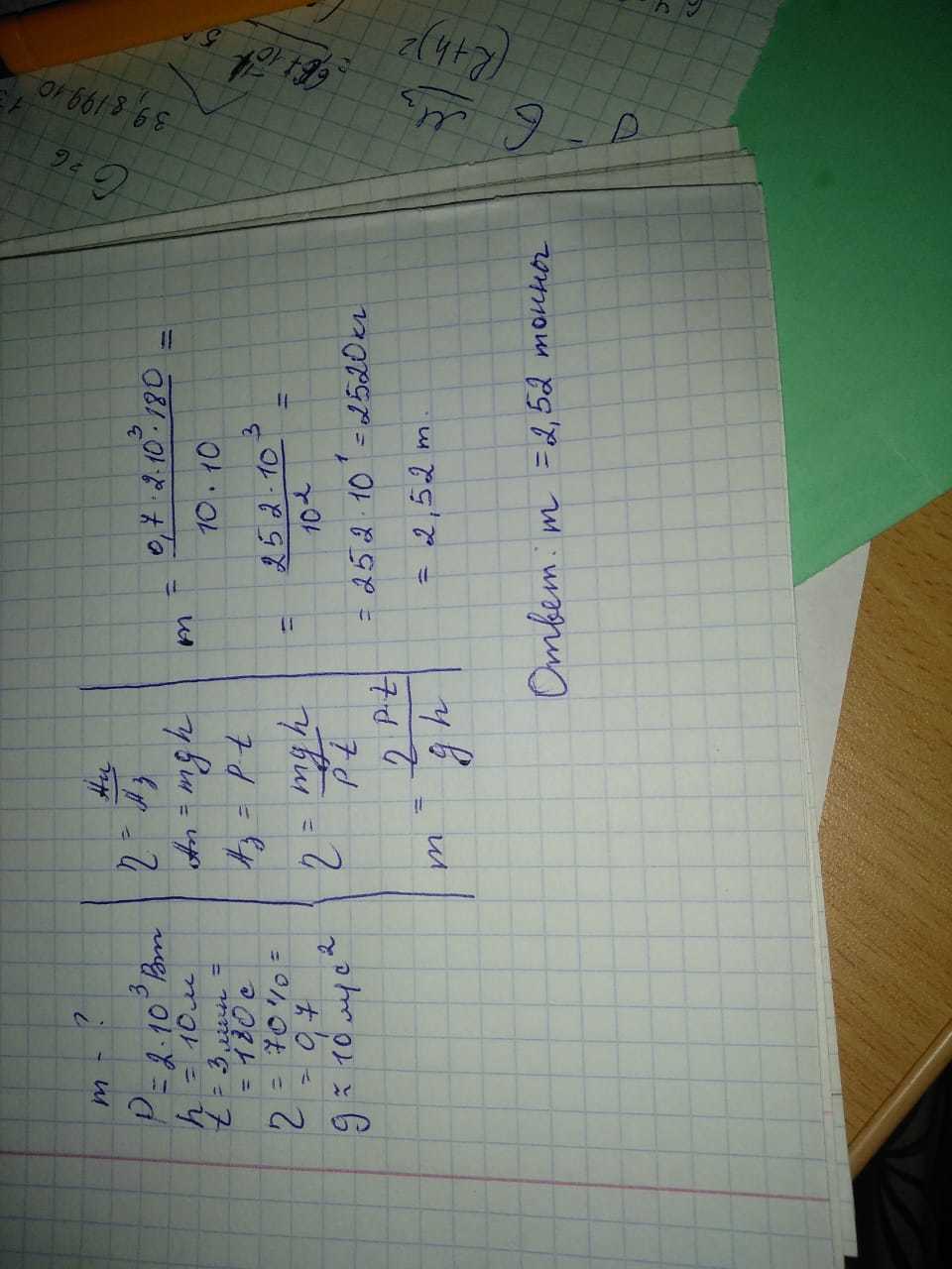 подъемный кран мощностью 2 квт поднимает груз на высоту 10 м за 3 мин какова масса груза если кпд крана 70%