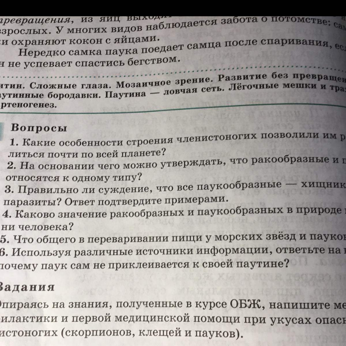 4 вопрос: они составляют звено в цепи питания, истребляют вредных насекомых (паукообразные) ; ракообразные очищают водоёмы от погибших животных и рыб.