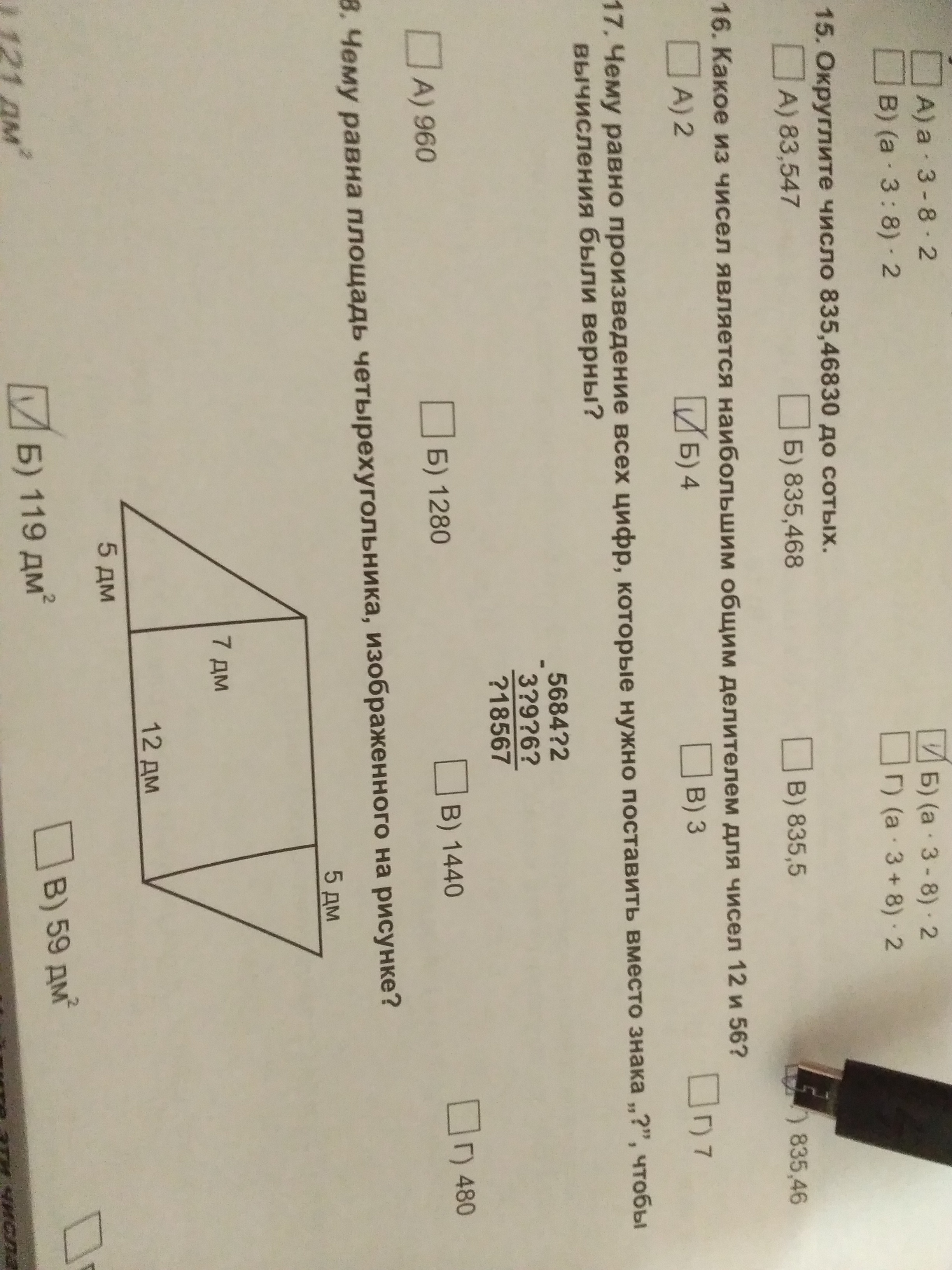 Чему равно произведение всех цифр, которые нужно поставить вместо знака "?" чтобы вычисления были верны?