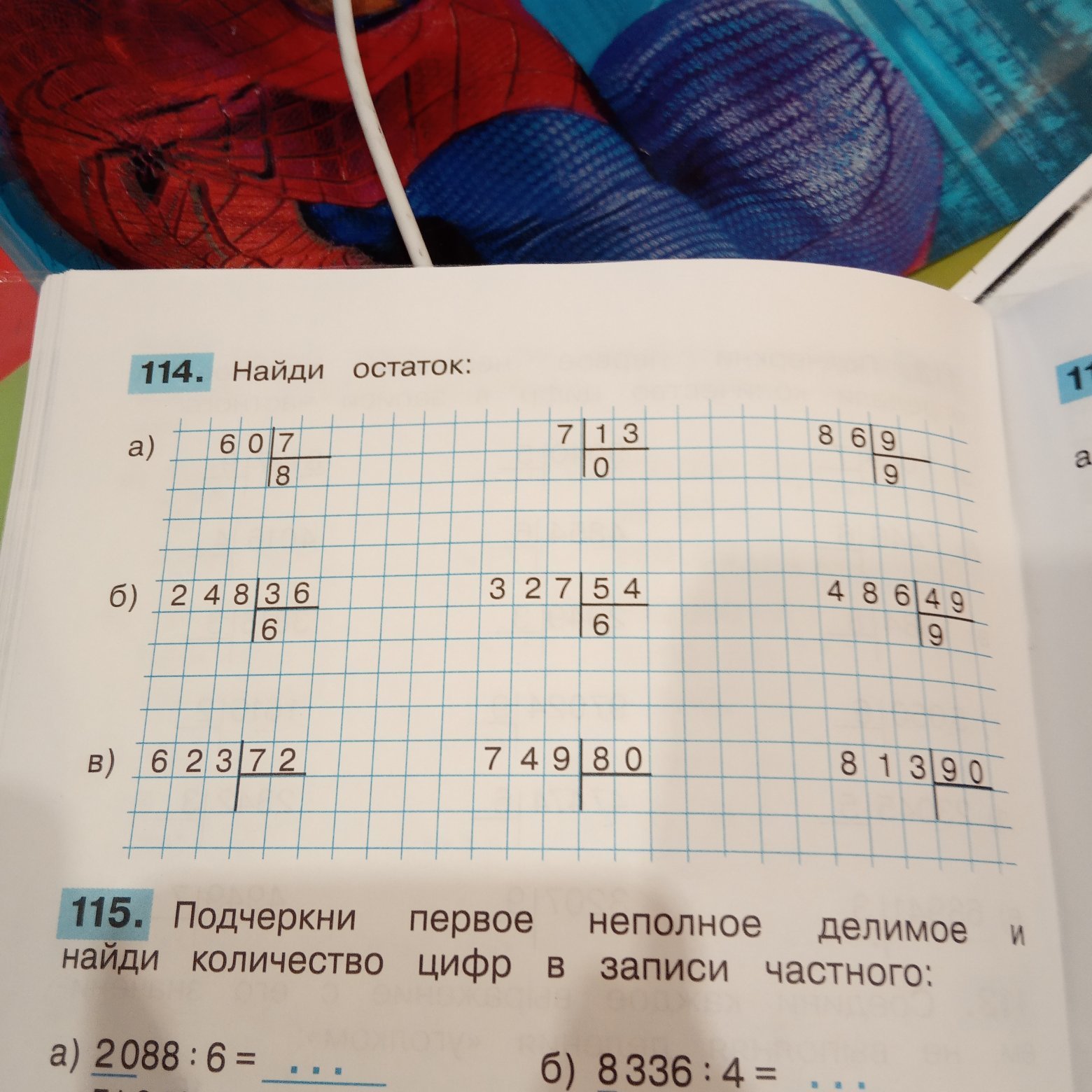 б) 1) 36*6 = 216 (ост.30), 2) 54*6 = 324 (ост.3), 3) 49*9 = 441 (ост.45).