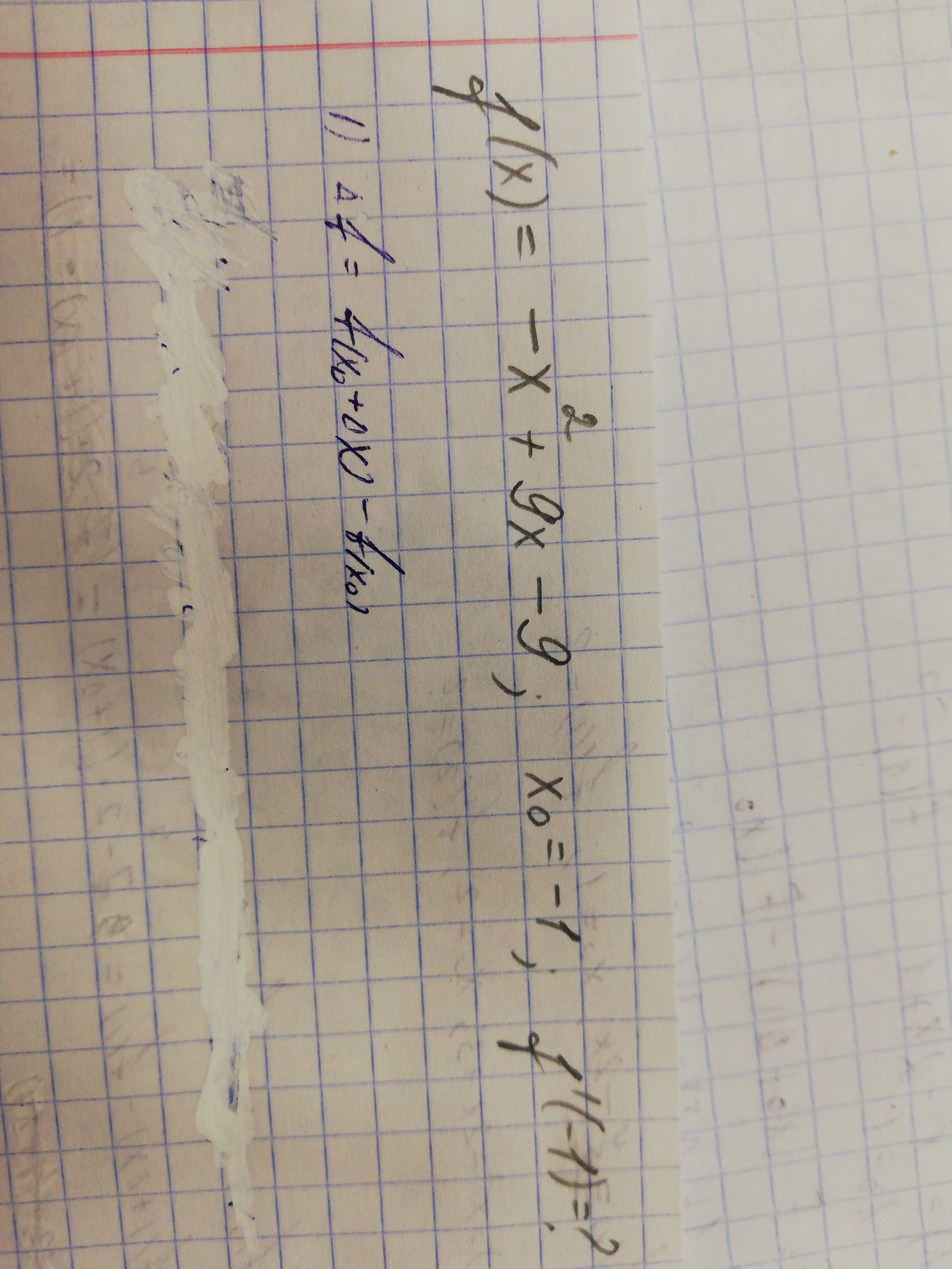 Δf(x) = f(Δx+x0) - f(x0) = -(Δx+x0)^2 + 9(Δx+x0) - 9 - (-(x0) ^ 2 + 9x0 - 9) = -Δx^2 - 2Δx*x0 - x0^2 + 9Δx + 9x0 - 9+ x0^2 - 9x0 + 9 = -Δx^2 - 2Δx*x0 + 9Δx
