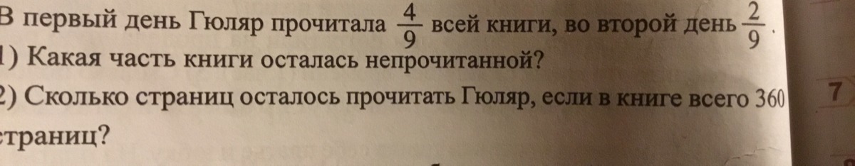 4/9 + 2/9=6/9 часть книги прочитано