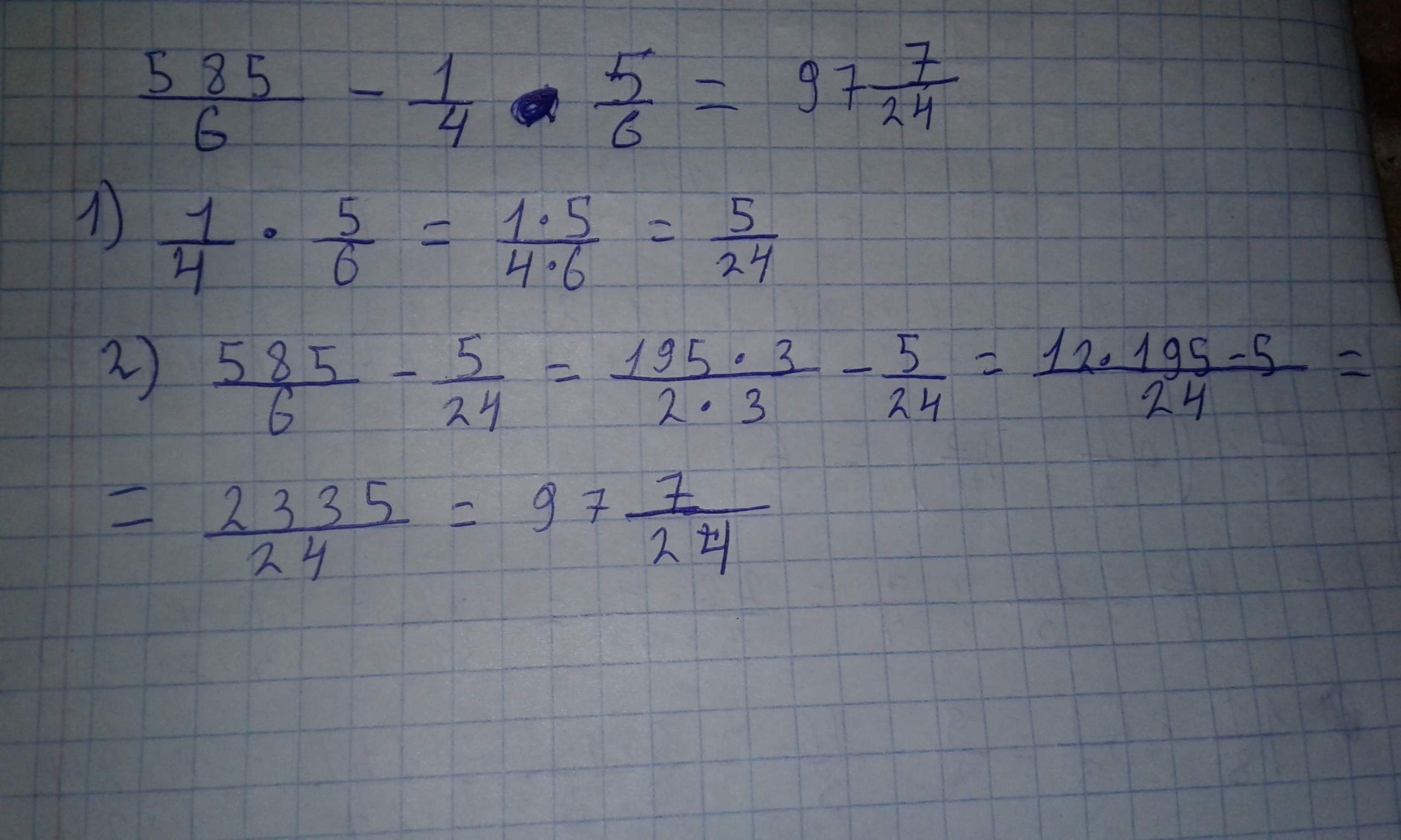 меняя распределительное свойство умножения вынесите общий знаменатель за скобки Вычислите 5 8 5/6 - 1 / 4 x 5/6