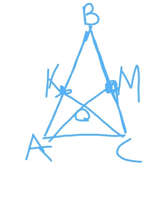 В равнобедренном треугольнике АВС с основанием АС медианы АК и СМ пересекаются в точке О.
