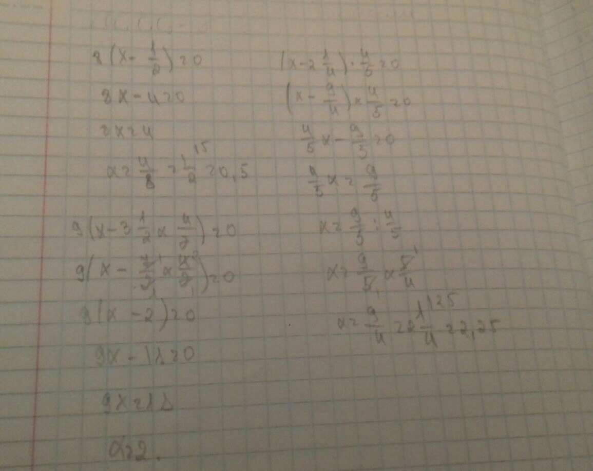 8 ( x - 1/2 ) = 0 , ( x - 2 , 1/4 ) × 4/5 = 0 , 9 ( x - 3 , 1/2 × 4/7 ) = 0 . Решите по скорей ! Даю 20 балов !