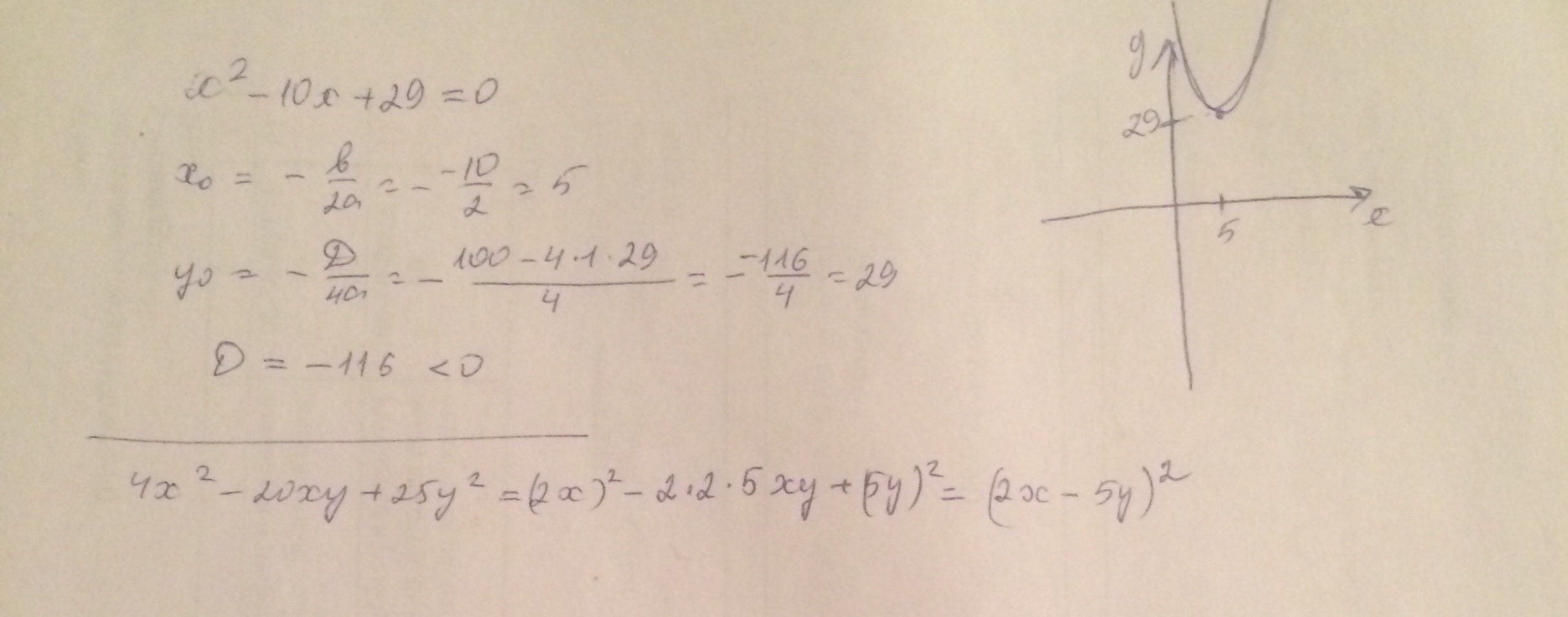 D=–116<0 следовательно парабола не имеет точек пересечения с осью Ох.
