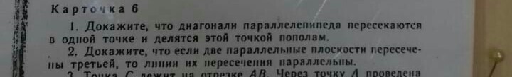 Аналогично доказывается, что диагонали и, а также диагонали и пересекаются и точкой пересечения делятся пополам. Отсюда заключаем, что все четыре диагонали параллелепипеда пересекаются в одной точке и точкой пересечения делятся пополам. Теорема доказана.