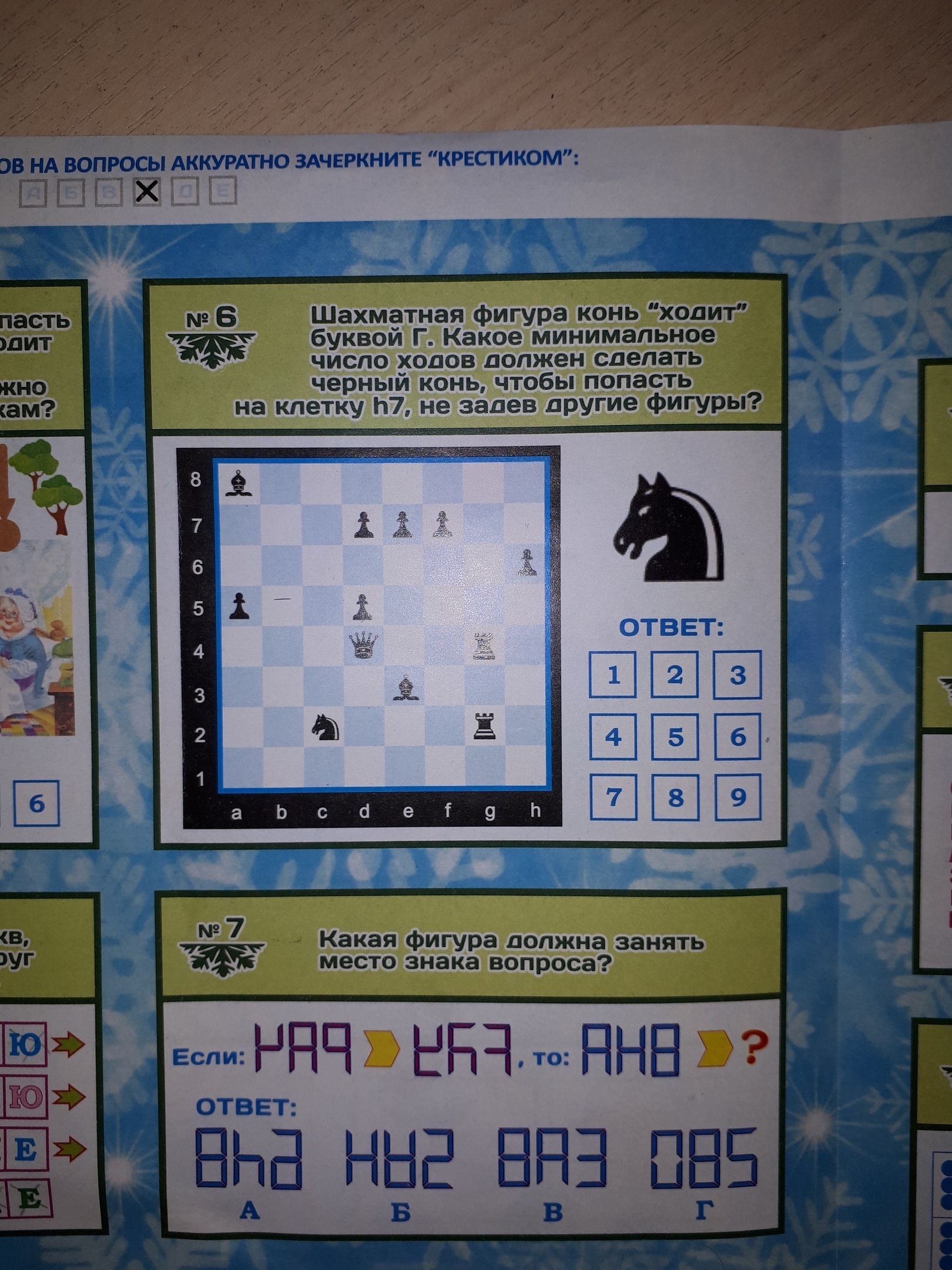 Номер 6) е1, f3, g5, h7, всего нужно 4 хода