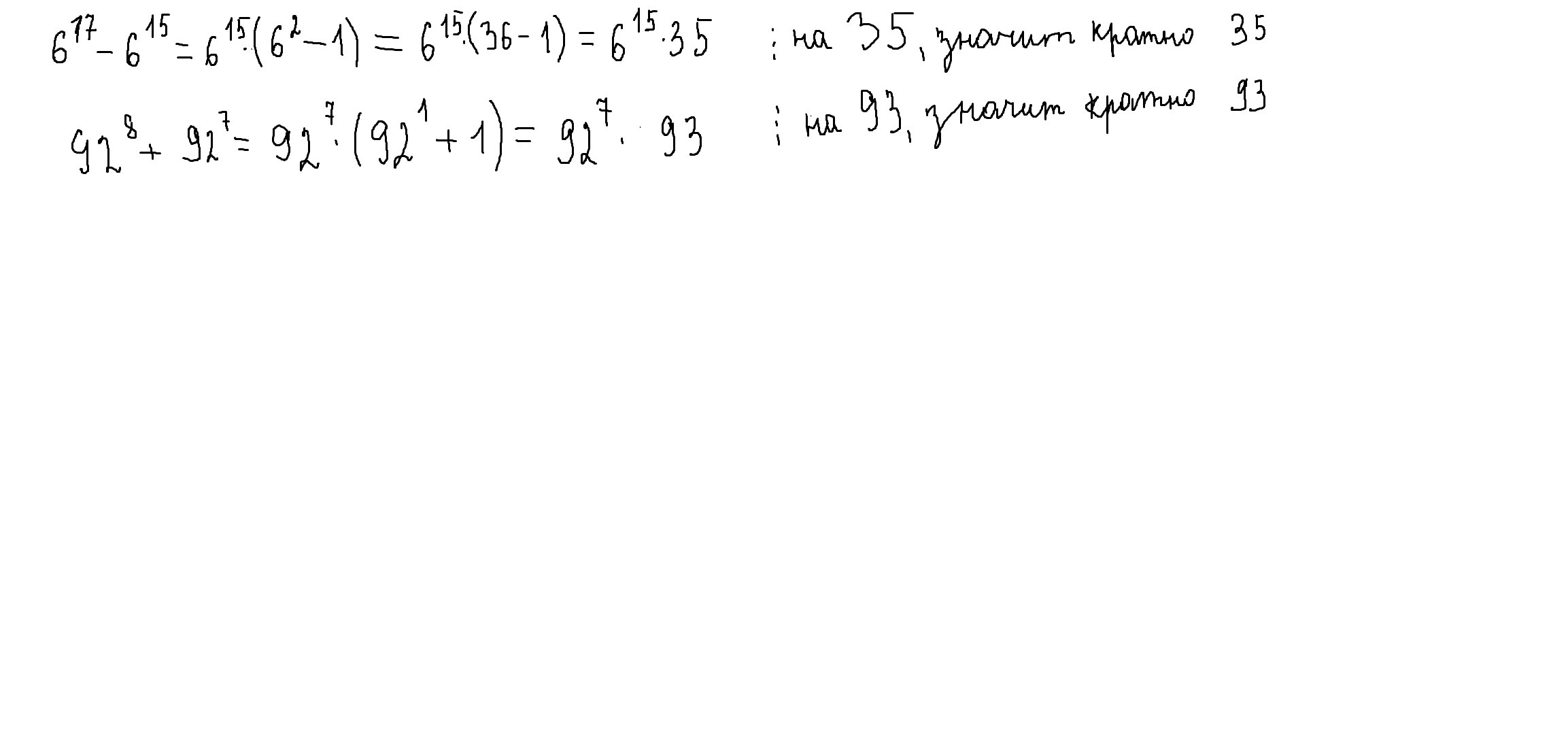 при решении получается произведение,одним из множителей которого является число 35.,значит 6¹⁷-6¹⁵ кратно 35