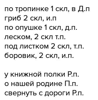 по тропинке шла,белый гриб нашла. походила по опушке-отыскала три волнушки.указать склонение и падеж.