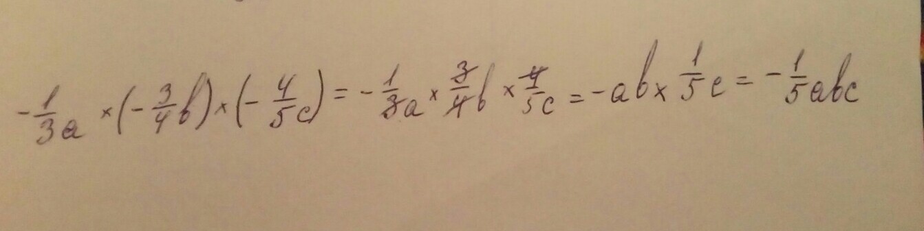 -1/3a×(-3/4b)×(-4/5c)= -1/3a×3/4b×4/5c =