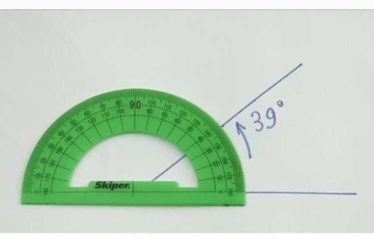 • Следующим вашим шагом будет проведение линии, которая пересекает разметку транспортира. Цифра же, расположенная на месте этого пересечения, указывает на угол в градусах.