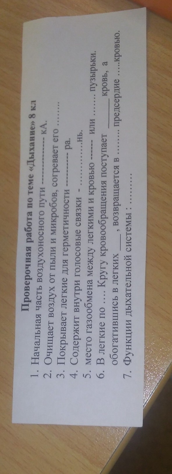 7) совокупность процессов напоавленных на поступление кислорода из внешней среды, его перенос кровью к клеткам, использование его клетками, вывод углекислого газа из организма и водяного пара из крови