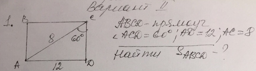 Помогите,пожалуйста решить задачу,где нужно найти площадь прямоугольника. (с диагональю)