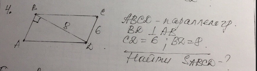 S(ABCD) = АВ*ВD = 6 * 8 = 48
