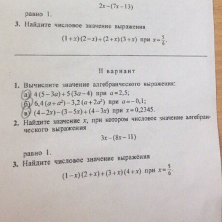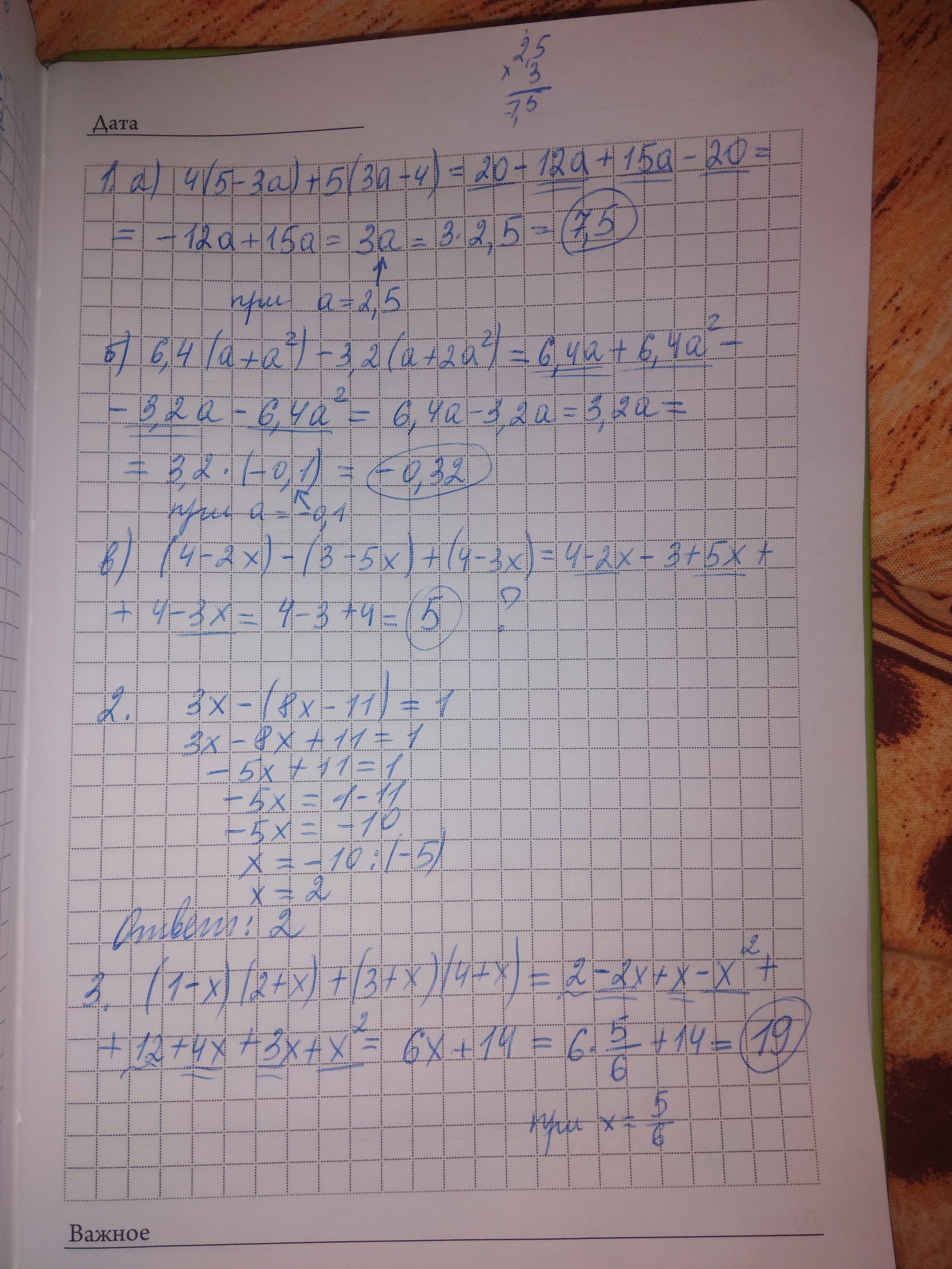 Нужно раскрыть скобки, привести подобные слагаемые и подставить значения в формулу. В пункте в) в условии скорее всего ошибка.