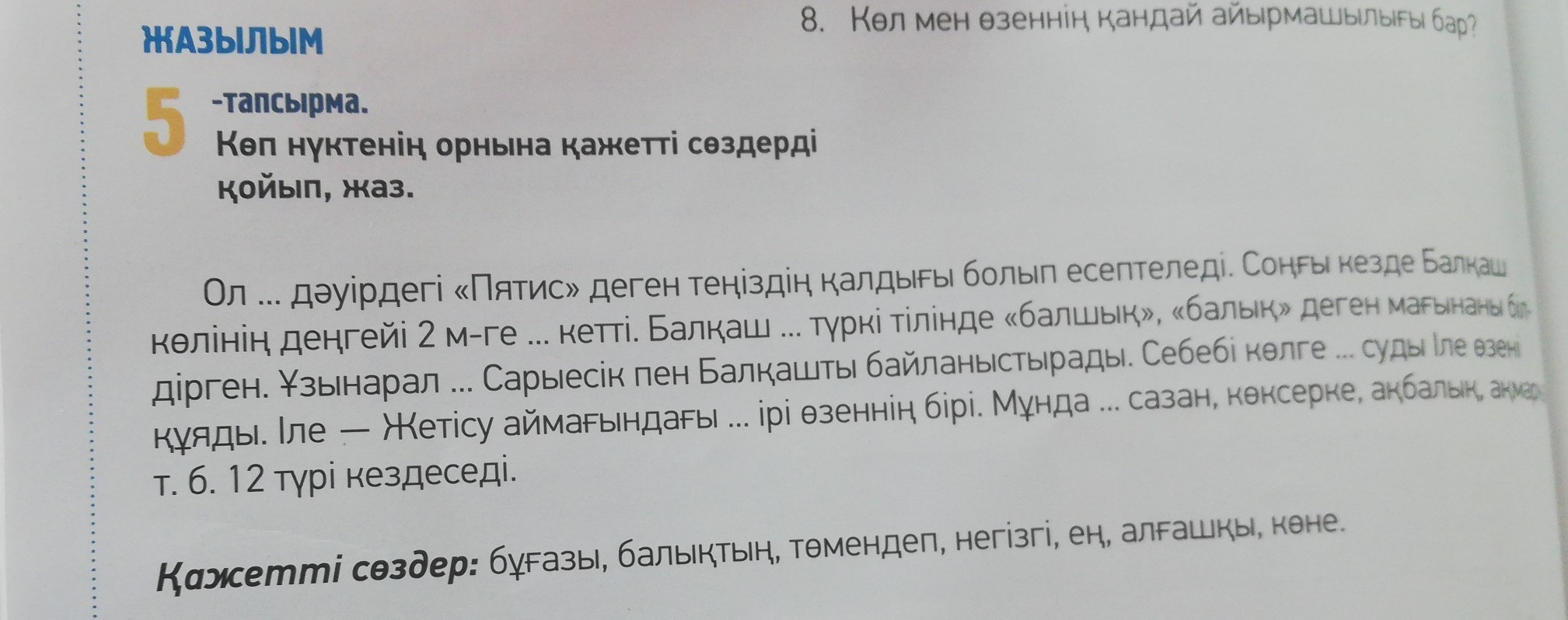 1Алғашқы 2Төмендеп3көне4бұғазы5негізгі6ең 7балықтың