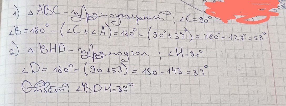 извеняюсь, что поздно ответила. Да, угол BDH равен 37°, это и есть ответ)