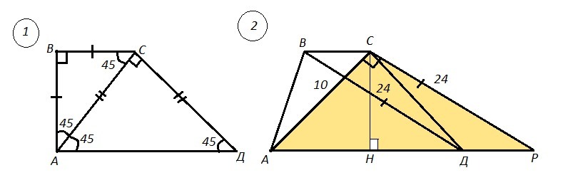 1) АВСД - трапеция, ∠ВАД=90° , АС - биссектриса ⇒ ∠ВАС=∠САД=45° , АС⊥СД ⇒ ∠АСД=90° , АС=7√3 . Найти длину средней линии трапеции m.