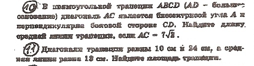 2) АВСД - трапеция , АС=10 см , ВД=24 см , ср.линия=m=13 см.