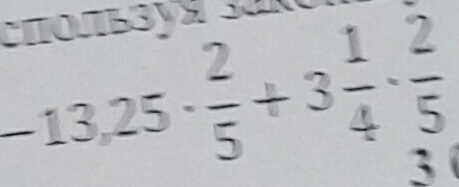 = 2/5 * (-13,25 + 3 1/4) = 2/5 *(-13,25 + 3,25) = 0,4*(-10) = -4