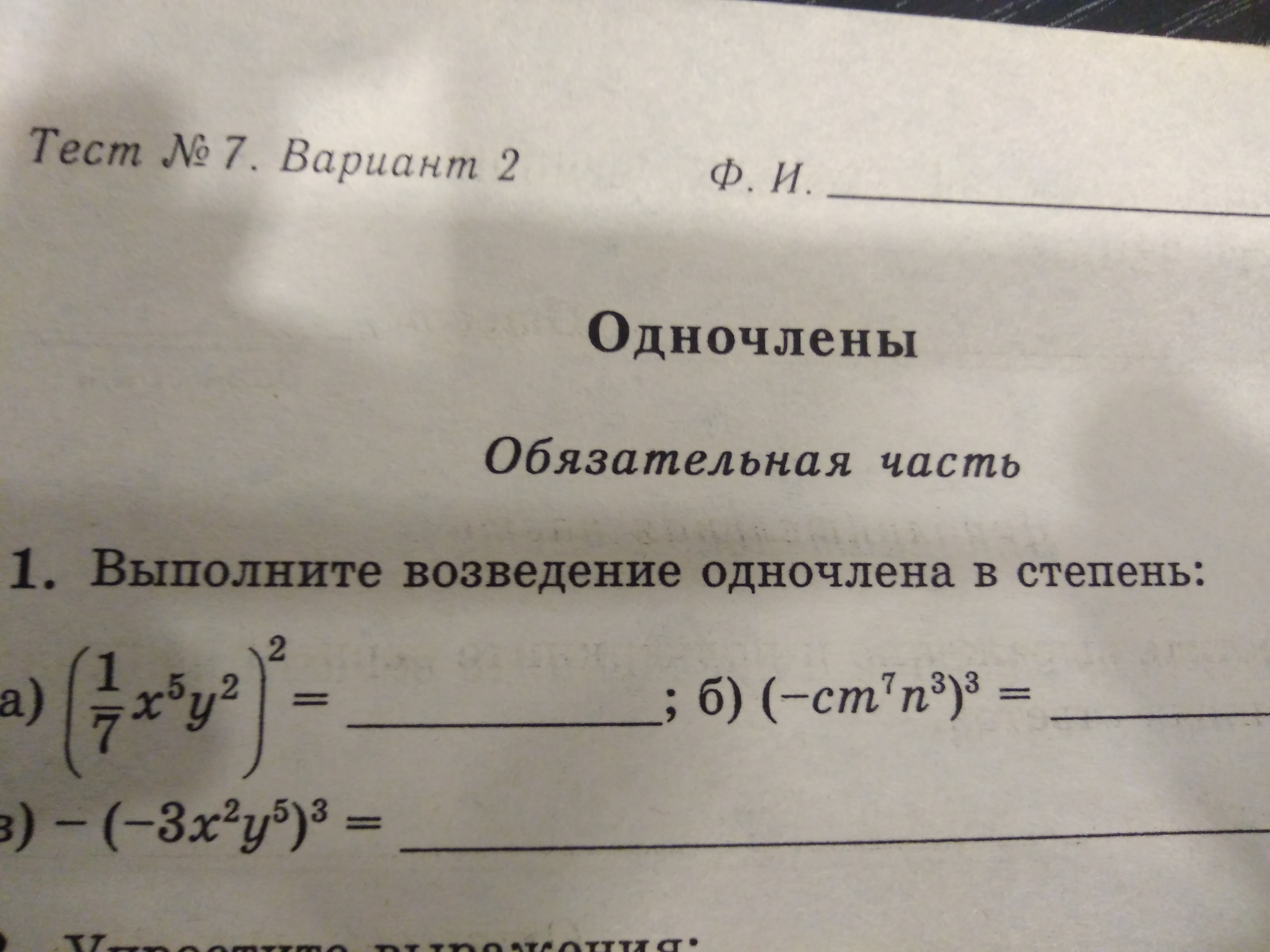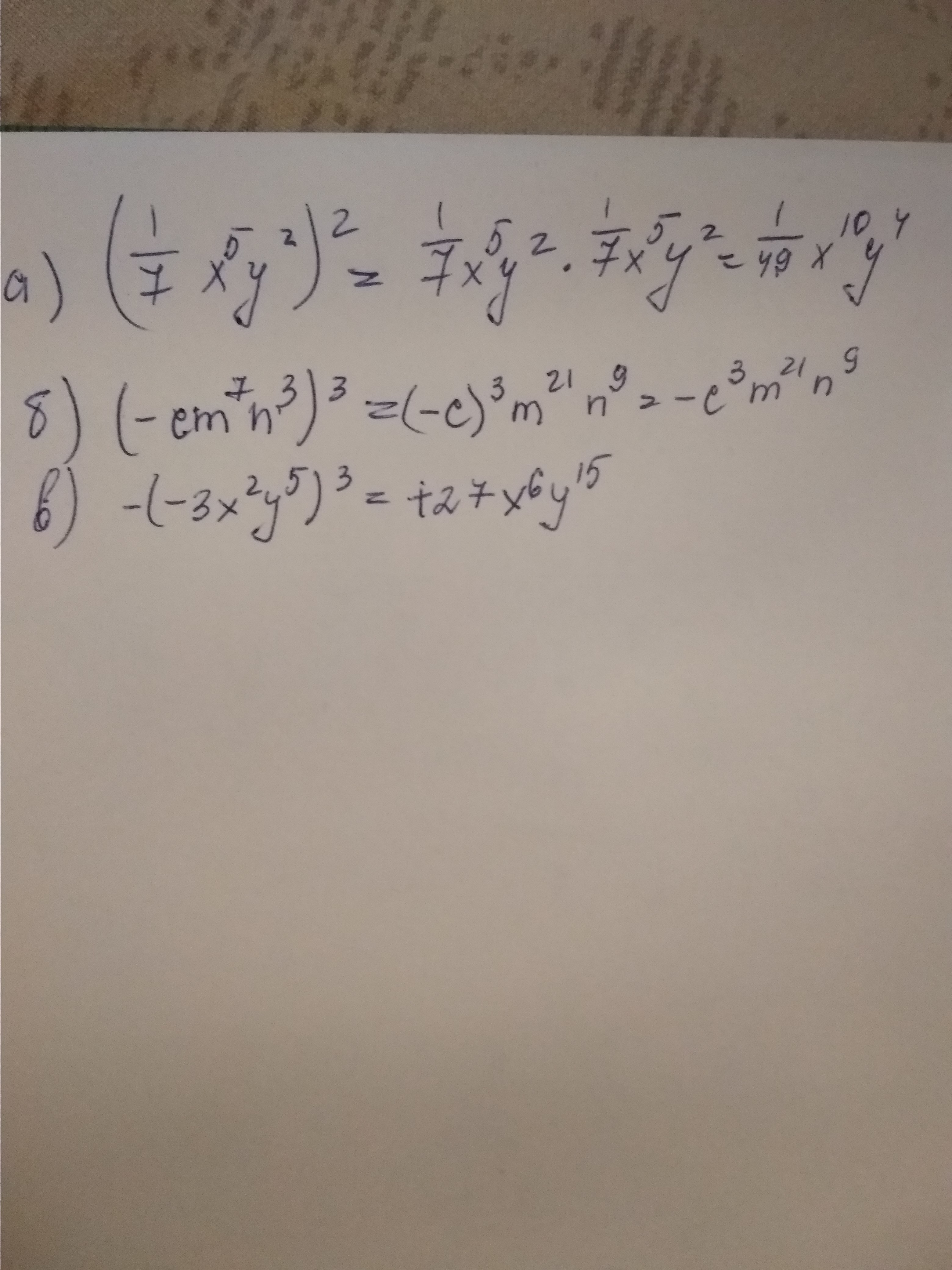 Помогите пожалуйста!!! Выполните возведение одночлена в степень. Кто сделает буду очень благодарен!!