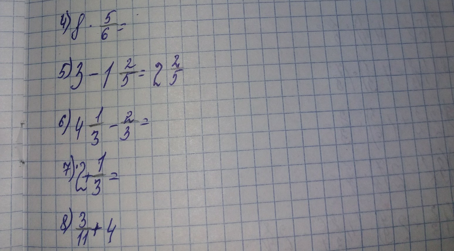 6) 4-2/3=13/3-2/3=11/3=3