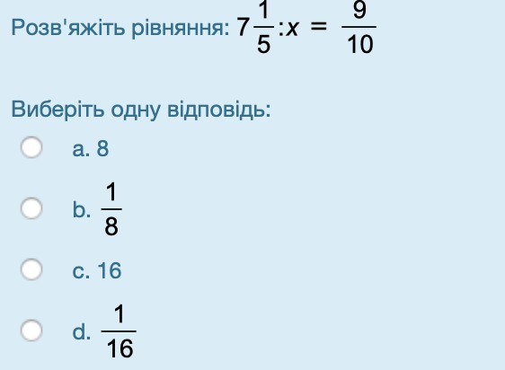 х=7 1/5:9/10=36/5:9/10=36*10/5*9=4*2/1