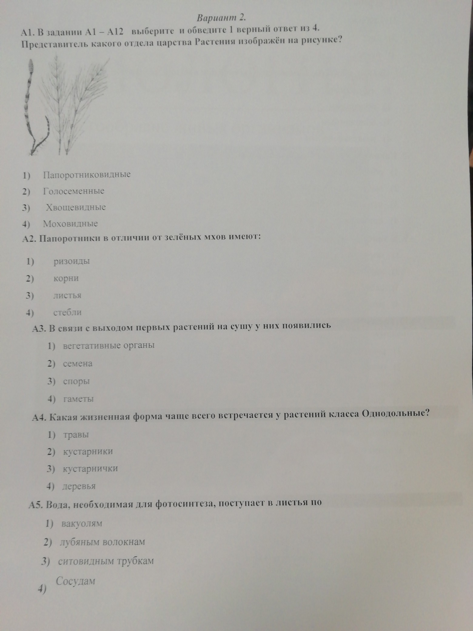 А1) хвощевидные