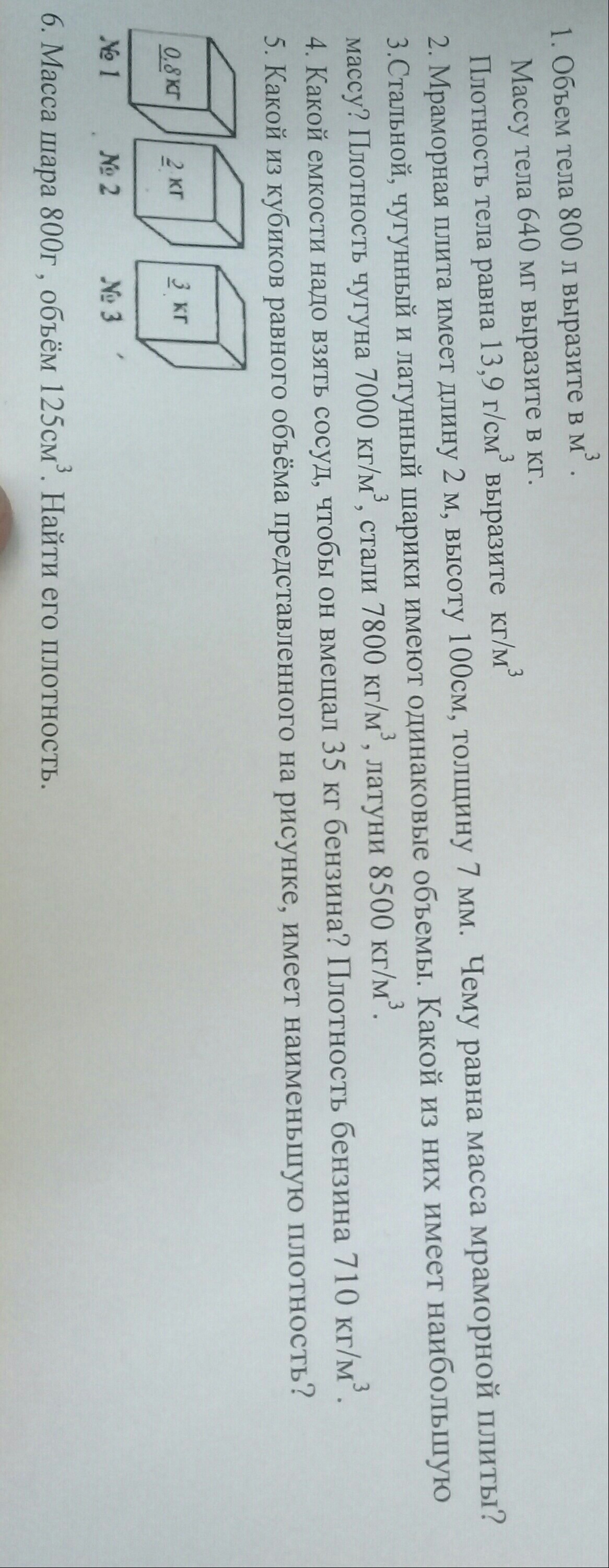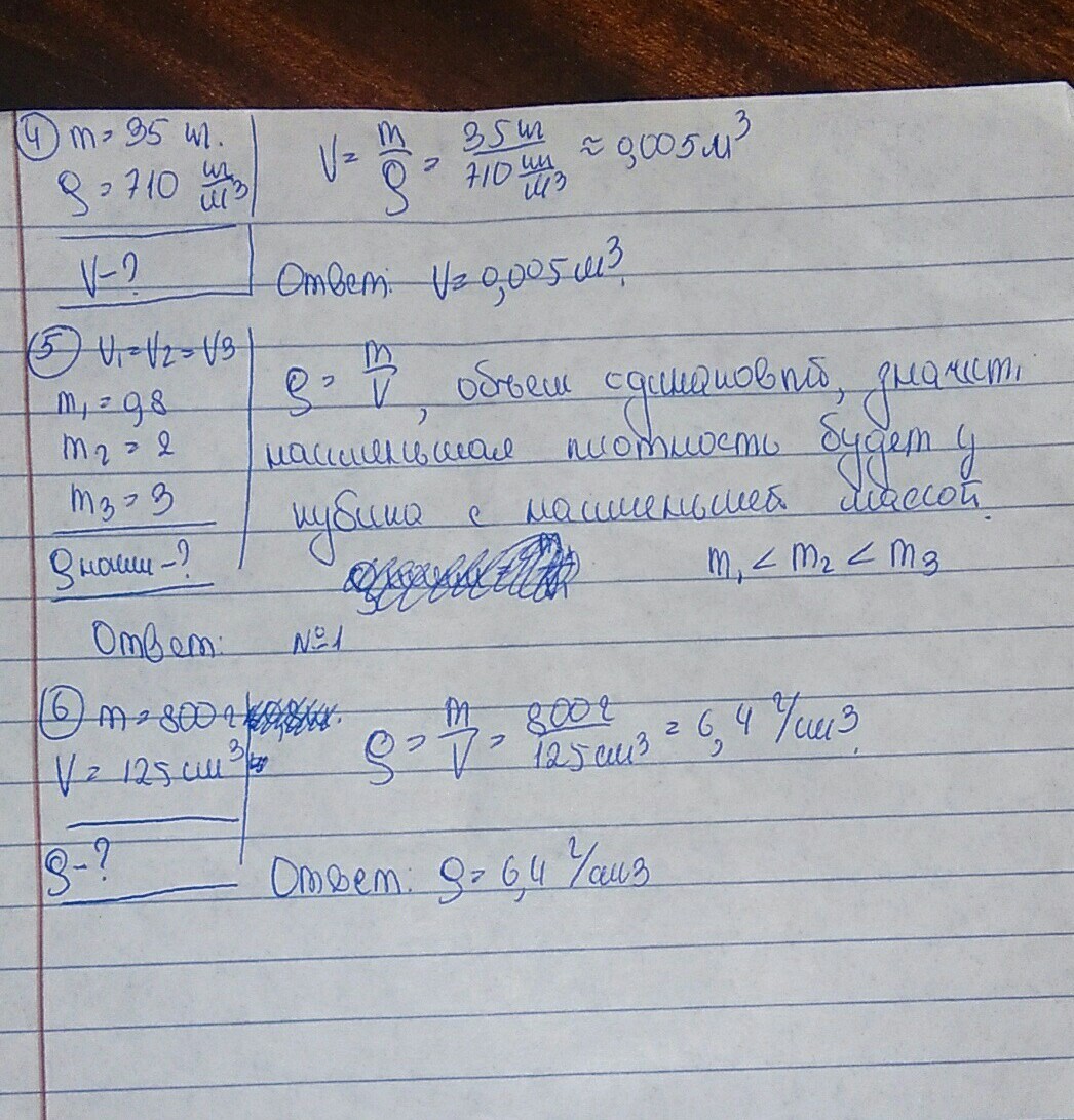 6. плотность ро=m/V=800/125см³=6.3г/см³