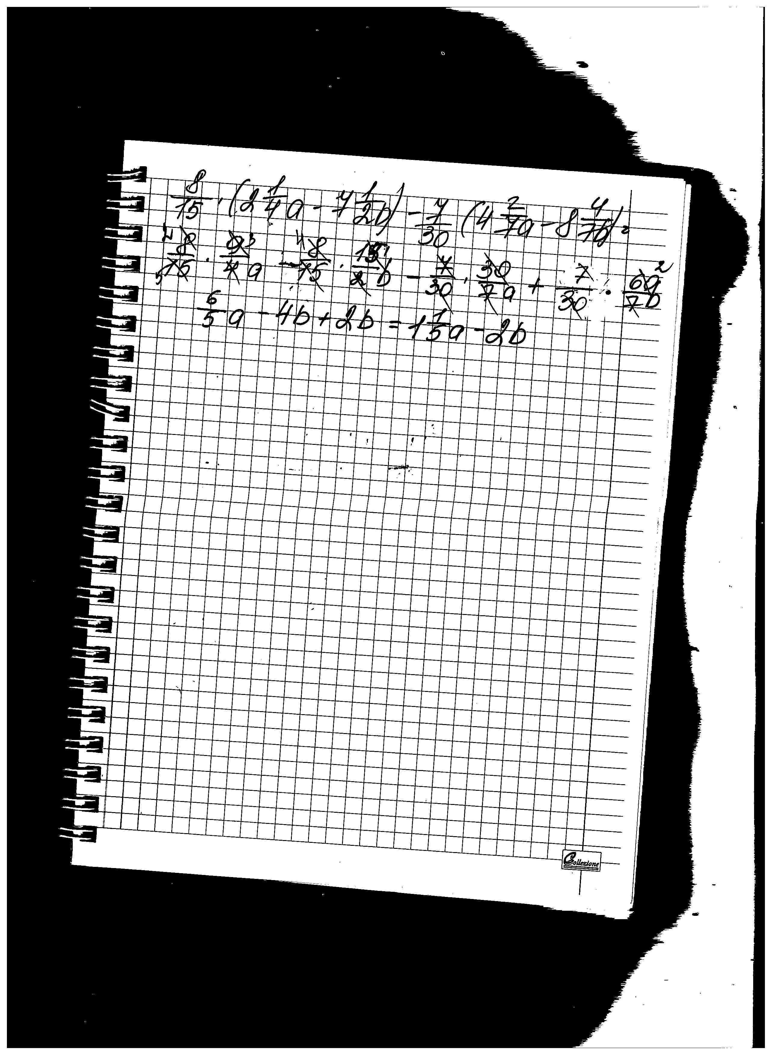 8/15 (2 1/4 а-7 1/2 b)-7/30 (4 2/7a -8 4/7b)=8/15(9/4a-15/2b)-7/30(30/7a-60/7b)=