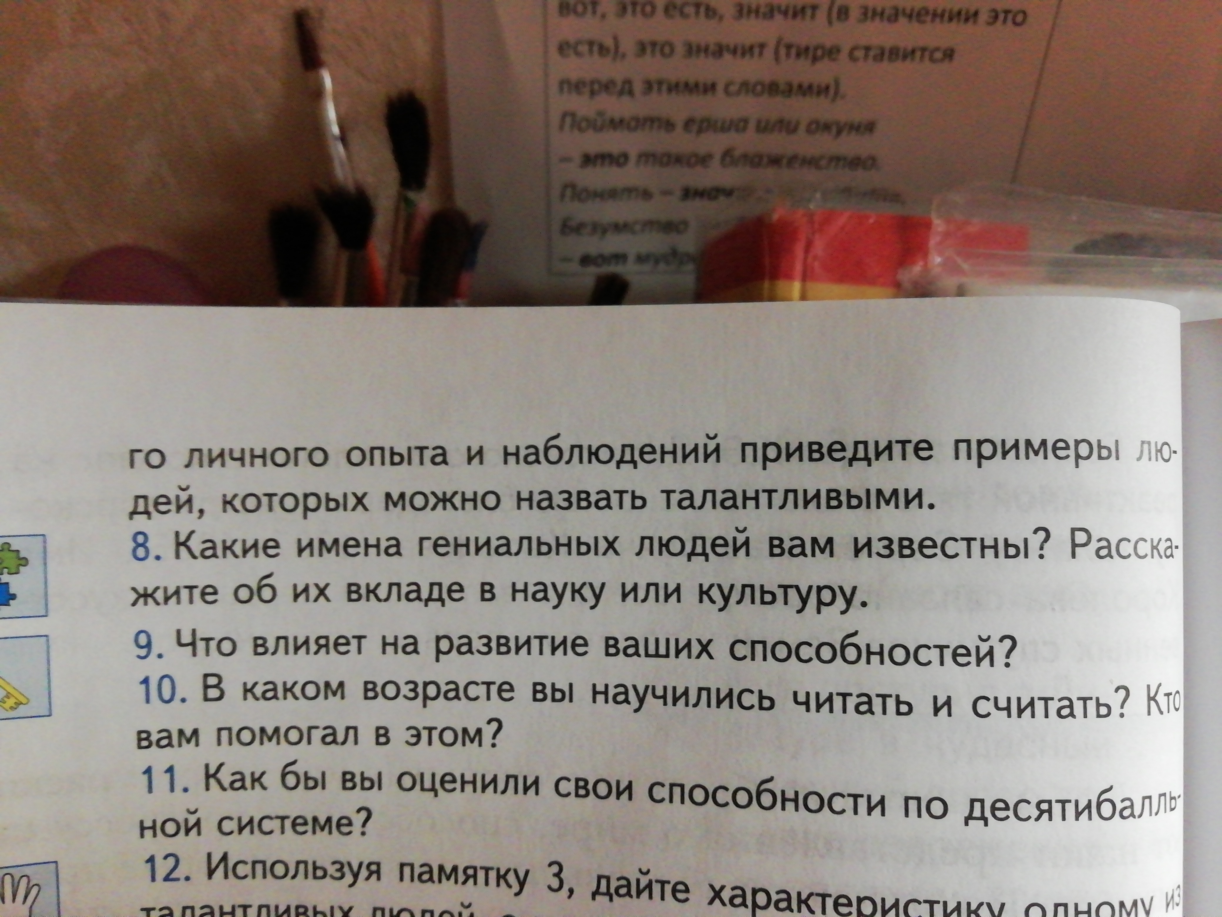 6.Современные люди не могу понять генеев просто из-за того,что они думают по другому,не так выражают свои мысли,тем самым их и не понимают,у них взгляды на жизнь отличаются.)