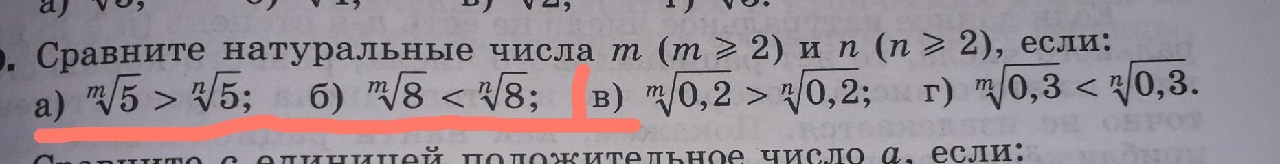 (Для понимания можно взять пример на √16. Если показатель корня равен 2, то число равно 4, а если показатель корня равен 4, то число равно 2. Таким образом, 2<4 (показатель корня), но 4>2 (выходит из корня.))