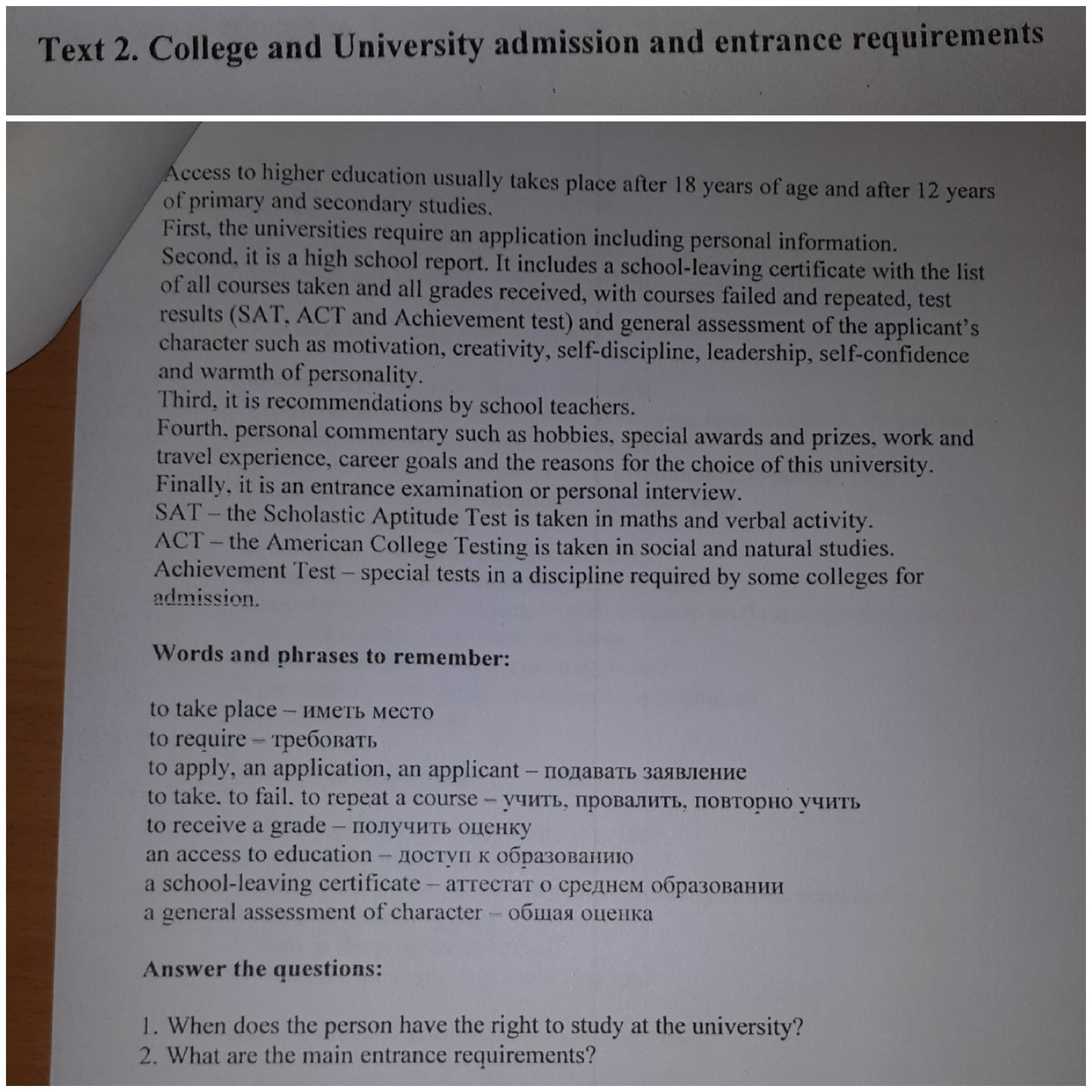 The main entrance requirements are the application, the high school report, the teacher's recommendations, a personal commentary and an entrance examination or personal interview.