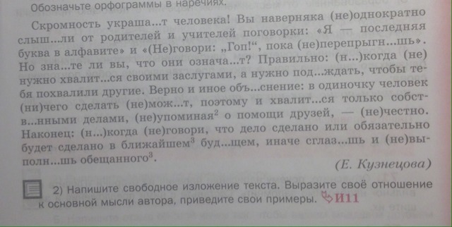 Скромность украшает человека. Вы наверняка неоднократно слышали от родителей и учителей поговорки:"Я - последняя буква в алфавите" и "Не говори "Гоп!", пока не перепрыгнешь". Но знаете ли вы, что они означают? Правильно: никогда не нужно хвалиться своими заслугами, а нужно подождать, чтобы тебя похвалили другие. Верно и иное объяснение: в одиночку человек ничего сделать не может, поэтому и хвалится только собственными делами, не упоминая о помощи друзей, - нечестно. Наконец: никогда не говори, что дело сделано или обязательно будет сделано в ближайшем будущем, иначе сглазишь и не выполнишь обещанного.