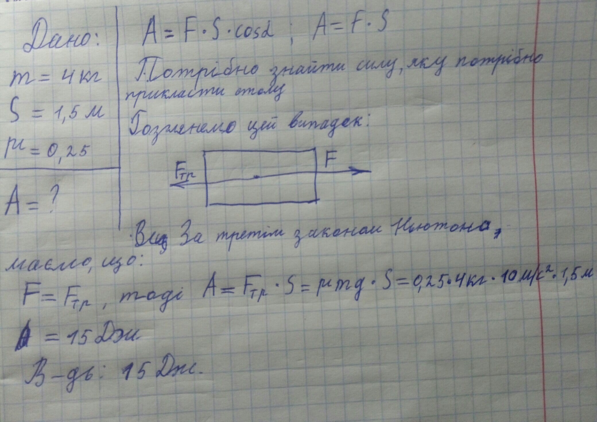 яку мінімальну роботу потрібно виконати щоб пересунути брусок масою 4 кг по столу на 1.5 м кофіцієнт тертя між столом та бруском 0.25