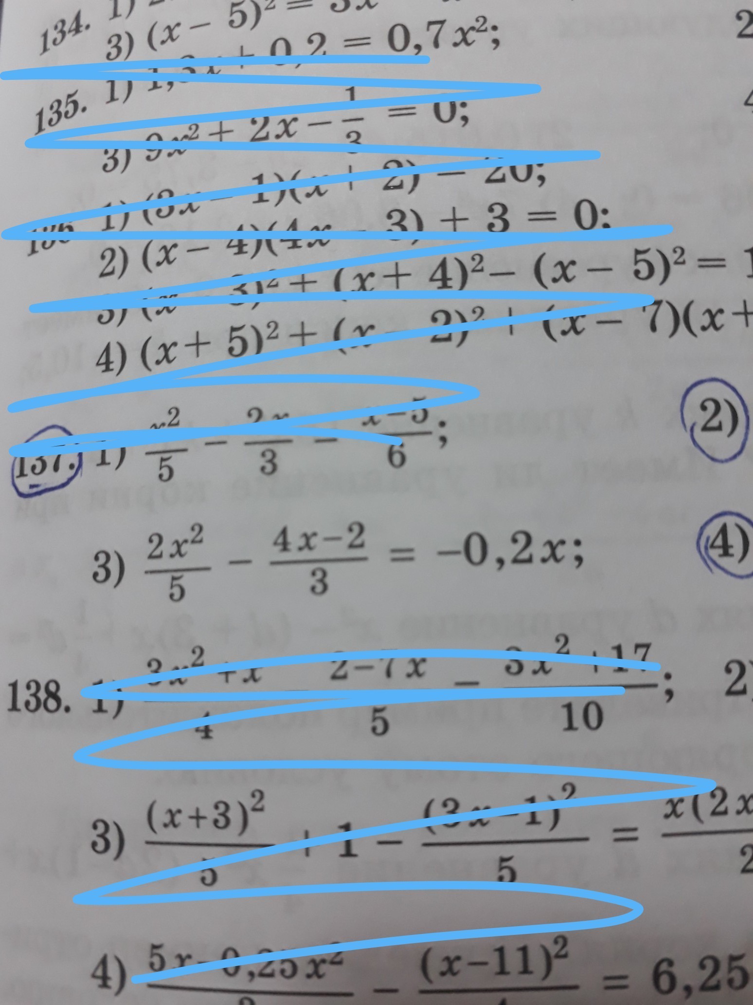 displaystylett frac{2x^2}{5}-frac{4x-2}{3}=-0.2x   |cdot15\\ 6x^2-5(4x-2)=-3x\\ 6x^2-20x+10+3x=0\\ 6x^2-17x+10=0\\ D=289-240=49=7^2\\ x_1=frac{17-7}{12}=frac{10}{12}=frac{5}{6}\\ x_2=frac{17+7}{12}=frac{24}{12}=2