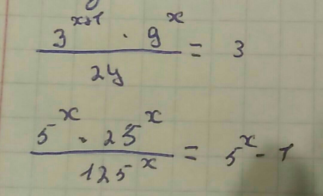 frac{ {5}^{x}  times 25^{x} }{ {125}^{x} }  =  {5}^{x}  - 1 \  {5}^{x + 2x}  = 5^{x + 3x}  -  {5}^{3x}  \ 3x = 4x - 3x \ x = 0