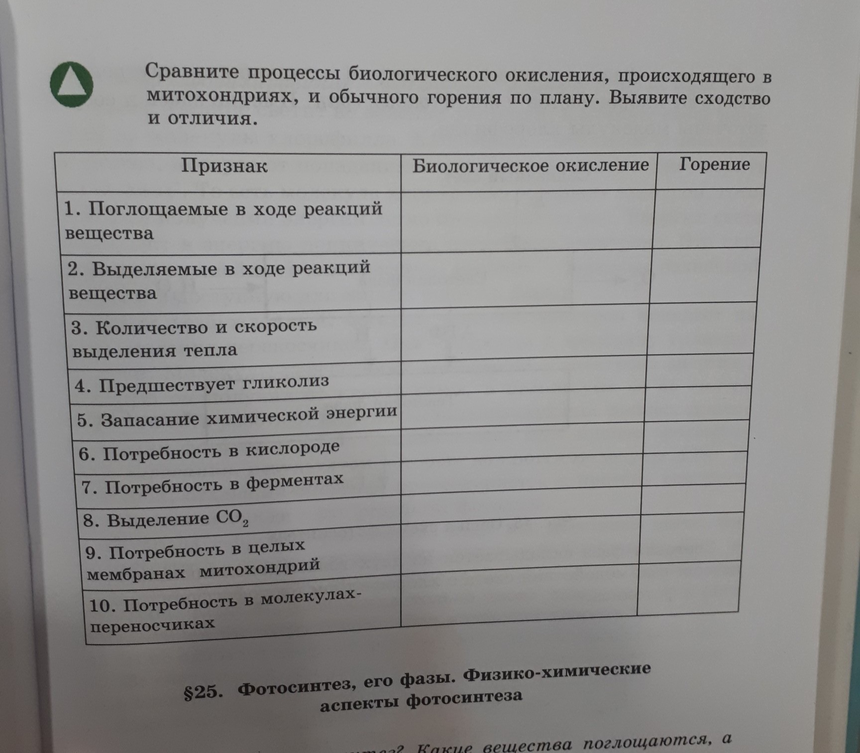 Сравните процессы биологического окисления, происходящего в митохондриях, и обычного горения по плану. Выявите сходство и отличия.
