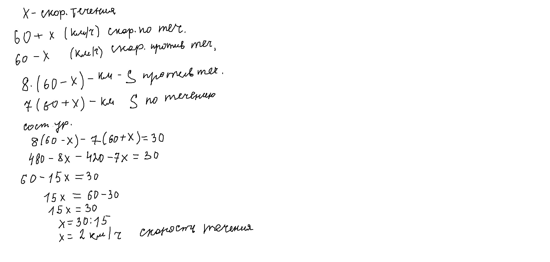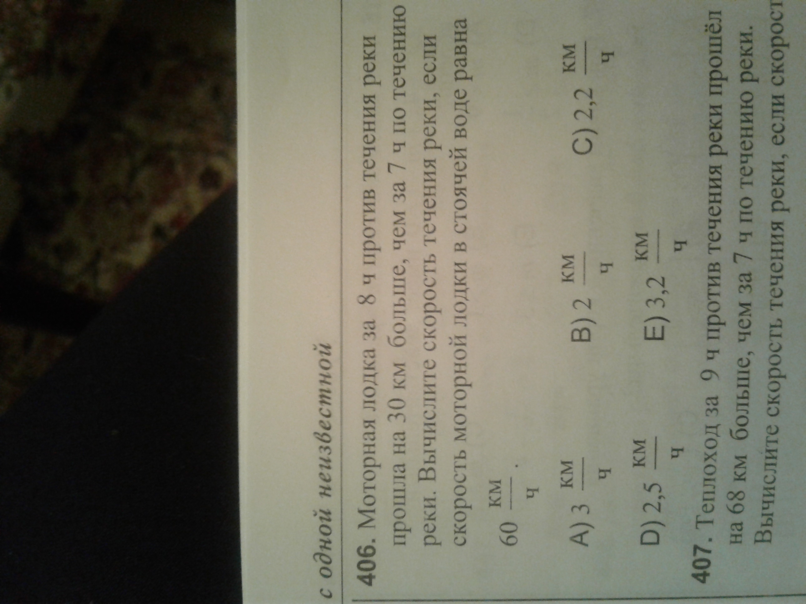 Ответ: скорость течения реки 2 кмч отв В)