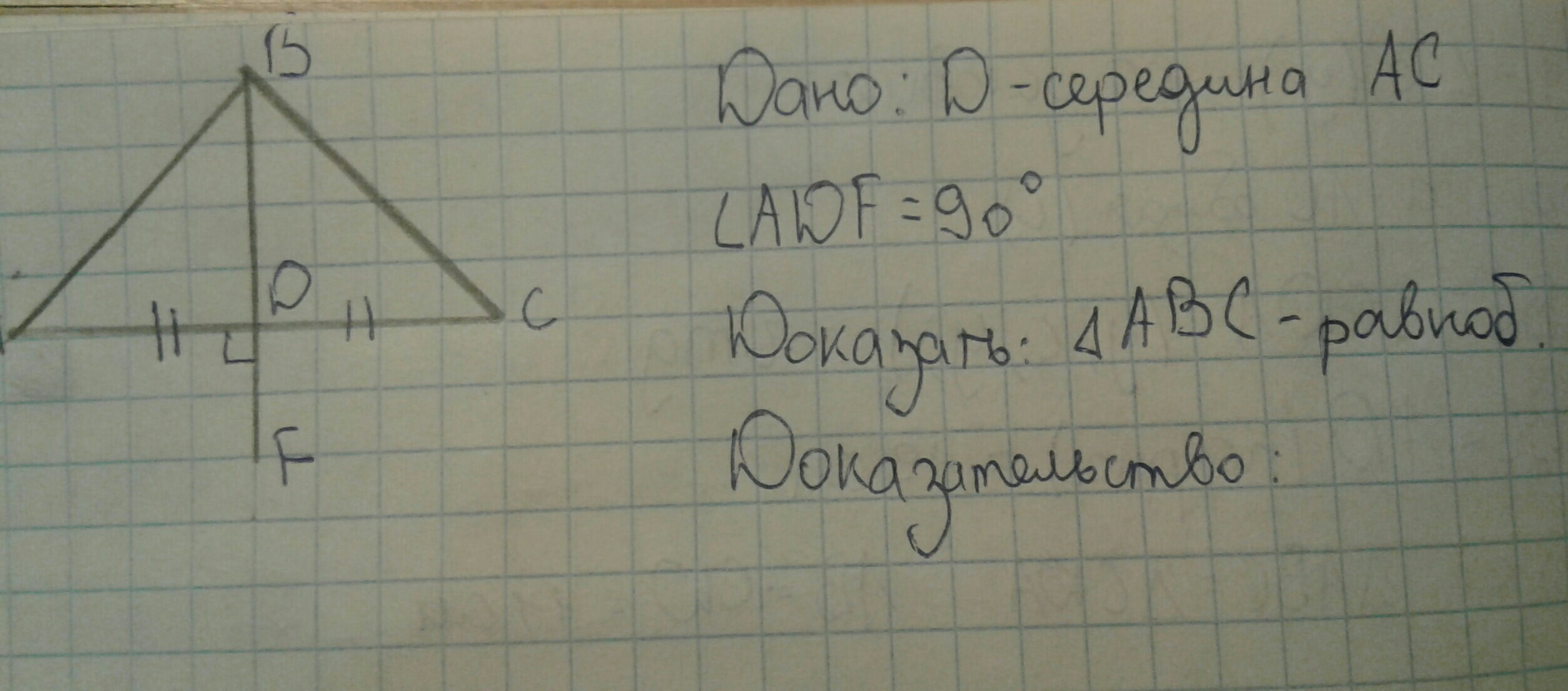Треугольники равны по двум катетам, следовательно AB=BC ТРЕУГ ABC равнобедр