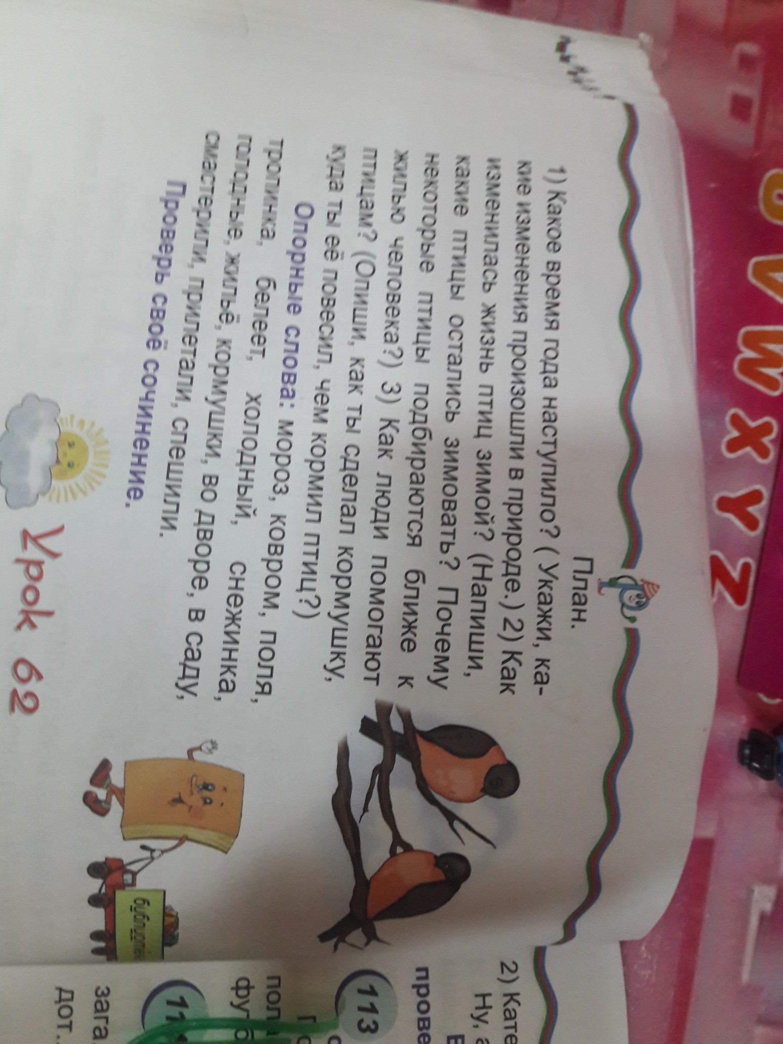 Наступила зима, стало очень холодно и начал выпадать снег.Некоторые птицы улетели в тёплые края, а птицы, которые умеют жить в холодных условиях прилетели к нам.Птичкам зимой бывает холодно и для того, чтобы выжить они стараются делать свои гнёзда ближе к людям, чтобы жить в тепле и вырастить своё потомство.Люди помогают птичкам для того, чтобы они пережили зиму, чтобы они не погибли от голода.Я тоже решил помочь им и поэтому я сделал кормушку со своим дедом и положил в неё семечек, а саму кормушку я повесил на ветку.
